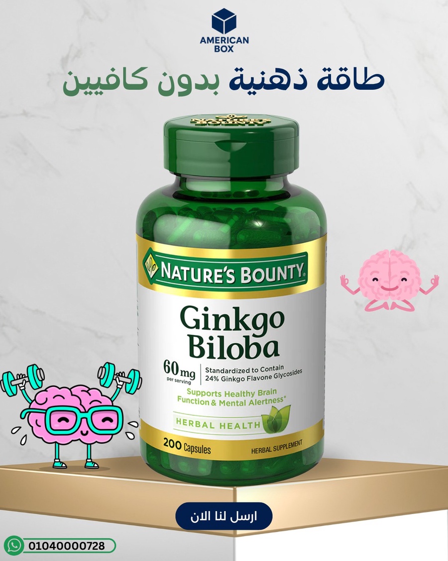 مكمل غذائي يحتوي على خلاصة جينكو بيلوبا لدعم الدورة الدموية وصحة الدماغ، ويساعد في تحسين التركيز والذاكرة وتعزيز الطاقة الذهنية. Benefits: 🧠 تحسين التركيز والذاكرة | 💓 دعم الدورة الدموية وصحة القلب | ⚡ زيادة الطاقة الذهنية | 🌿 مضاد أكسدة طبيعي | ✅ يعزز الصحة العامة