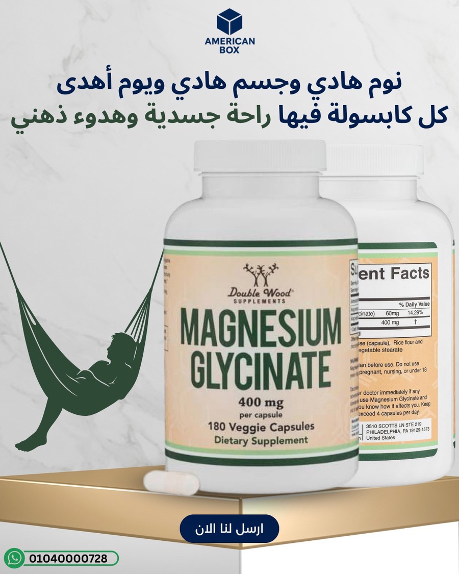 Double Wood Magnesium Glycinate ماغنسيوم جلايسينات لدعم الاسترخاء والنوم والعضلات | 1–2 كبسولة مساءً حسب الملصق