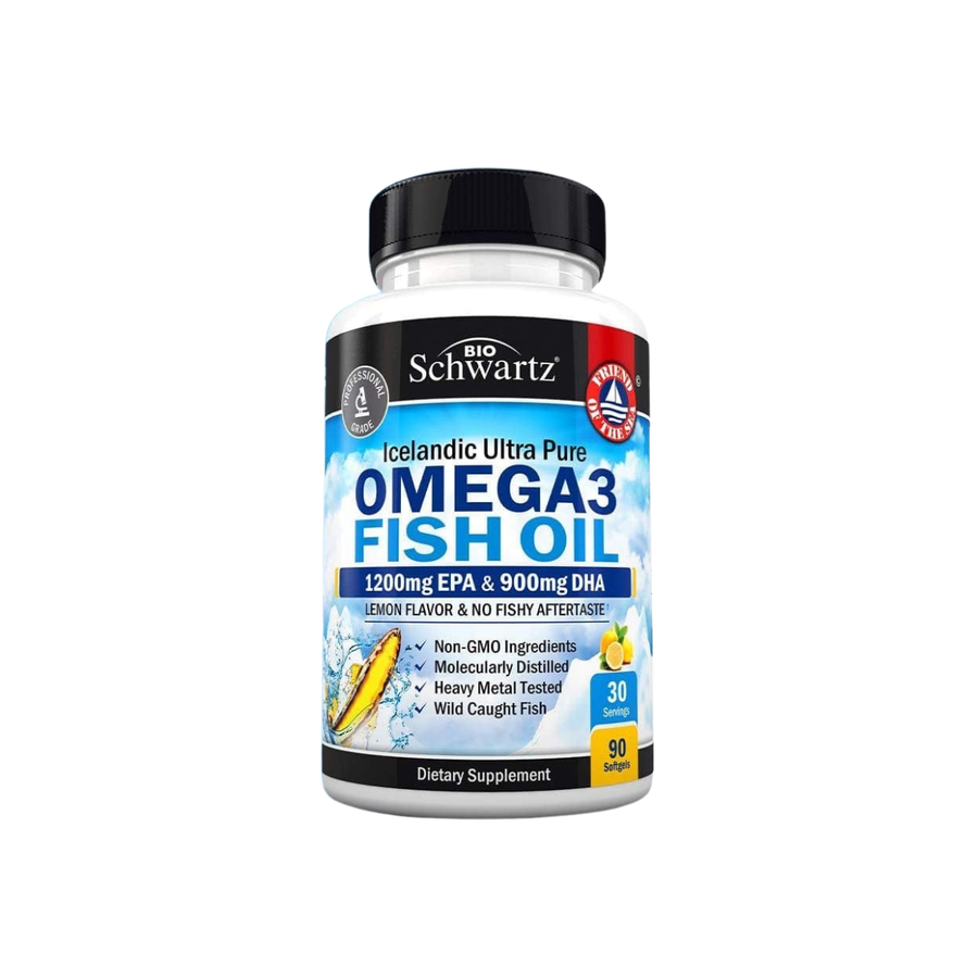 BioSchwartz Omega 3 دعم القلب والمخ بتركيز عالي EPA/DHA مع ليمون Burp-less | 90 سوفتجل وتوصيل داخل مصر