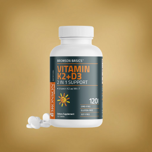 Bronson Vitamin K2 (MK‑7) + Vitamin D3 is a combined supplement delivering high-potency D3 plus K2 in one capsule to support bone and heart wellness within a structured daily routine. The common idea is that D3 supports calcium absorption, while K2 (MK‑7) is associated with helping direct calcium toward bones—so many people prefer pairing K2 with D3 rather than taking D3 alone.