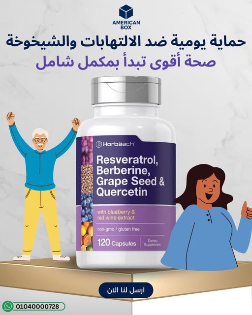 Horbäach Resveratrol + Berberine + Grape Seed + Quercetin مضادات أكسدة مركبة (600mg/حصة) | كبسولات سريعة في مصر
