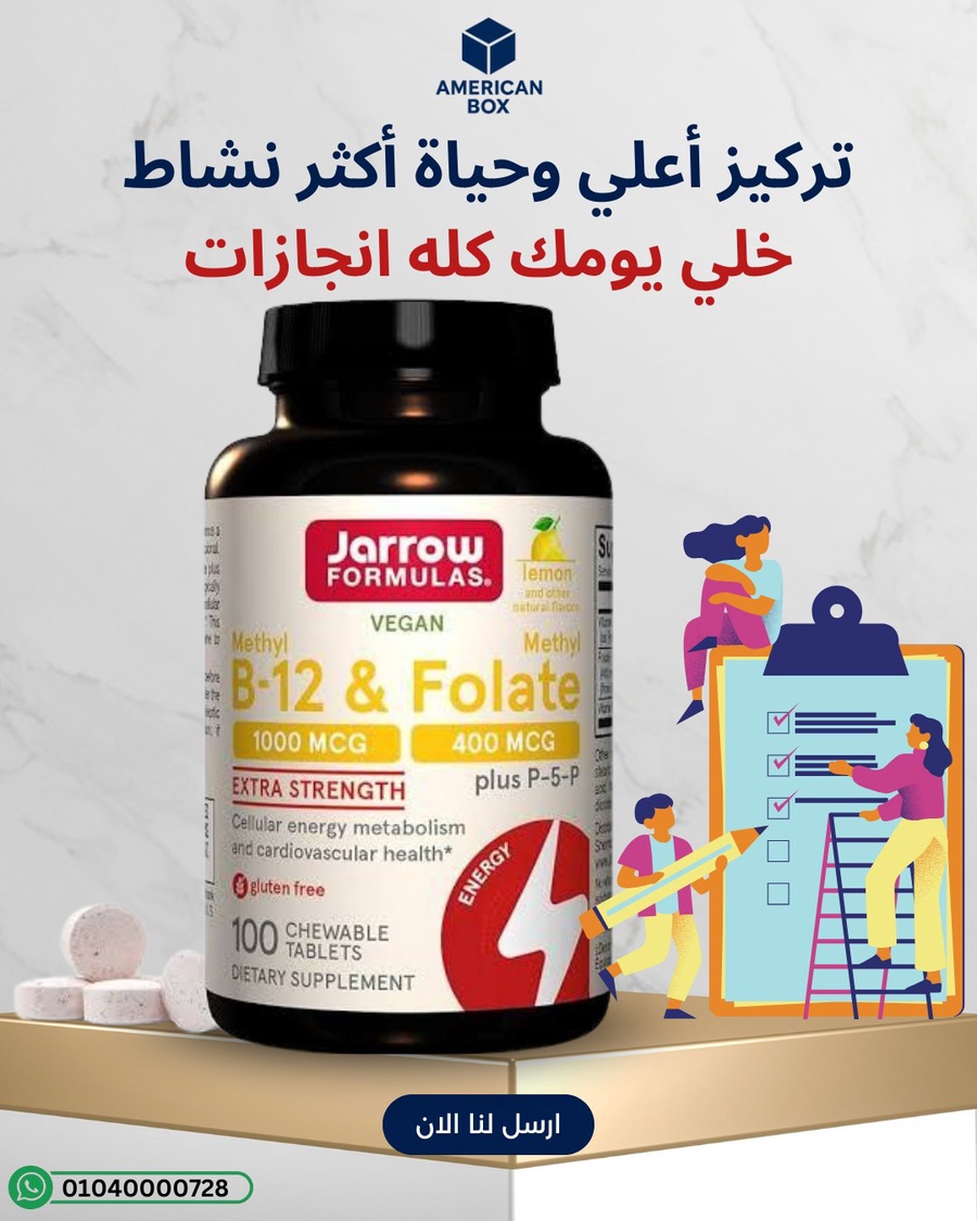 Jarrow Formulas Vegan Methyl B‑12 & Methyl Folate هو مكمل على شكل أقراص مص/قابلة للمضغ، يجمع بين الشكل النشط من فيتامين B12 (Methylcobalamin) والشكل النشط من الفولات (Methylfolate). هذا النوع من المنتجات يُستخدم عادةً لدعم الطاقة الخلوية ووظائف الأعصاب وتكوين الدم ضمن روتين يومي.