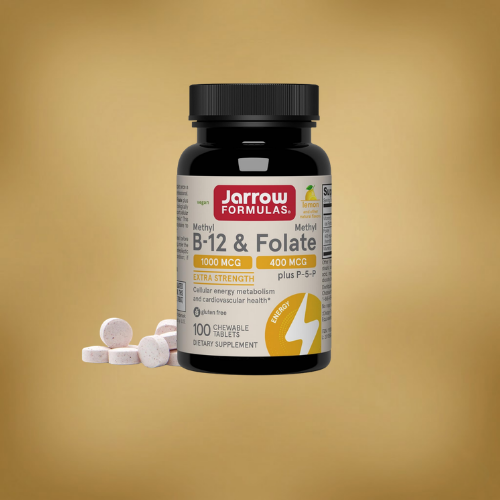 Jarrow Formulas Vegan Methyl B‑12 & Methyl Folate is a vegan lozenge/chewable supplement combining the active form of vitamin B12 (methylcobalamin) with the active form of folate (methylfolate). This category is commonly used for cellular energy, nervous system support, and healthy blood-related routines.