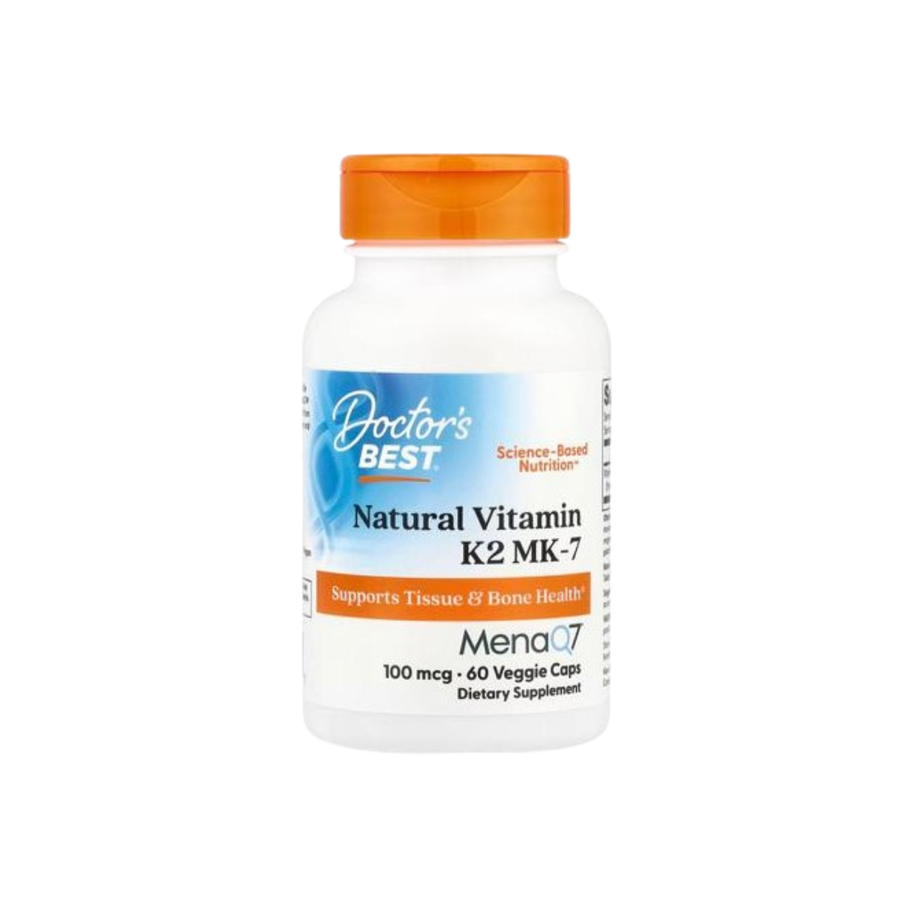 مكمل Doctor's Best Natural Vitamin K2 MK-7 بتركيز 100 ميكروغرام هو مكمل غذائي نباتي مصمم لدعم صحة العظام والقلب من خلال تنظيم توزيع الكالسيوم في الجسم. تحتوي العبوة على 60 كبسولة نباتية، مما يكفي للاستخدام لمدة شهرين عند الالتزام بالجرعة الموصى بها.