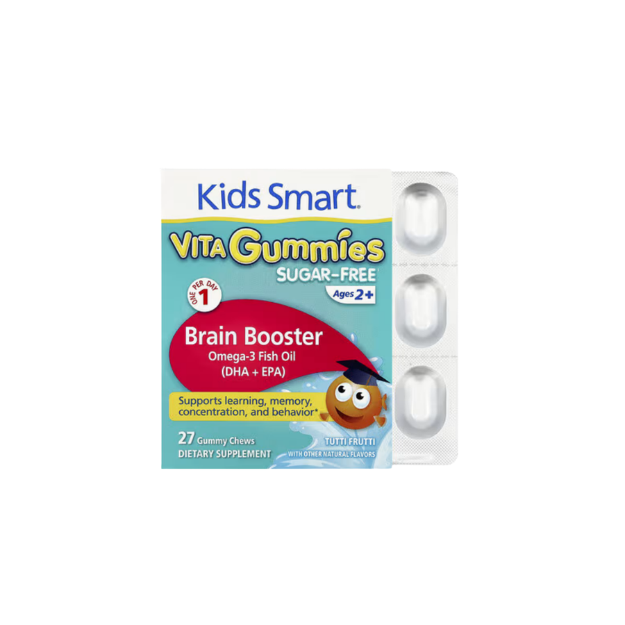 Kids Smart Vita Gummies Brain Booster is a kids’ gummy supplement (ages 2+) designed to support brain development and learning-focused routines using omega‑3s (DHA + EPA). The gummy format can make day-to-day adherence easier for children who don’t like pills.