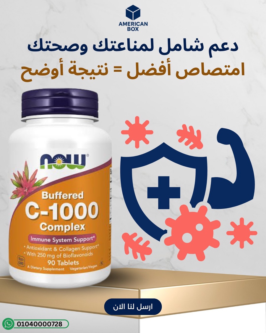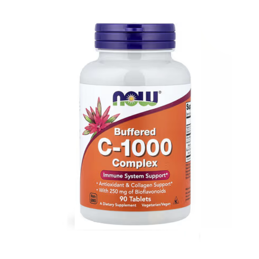 NOW Foods Buffered C‑1000 Complex هو مكمل فيتامين C بصيغة “Buffered” (غير حمضية) يعتمد على Calcium Ascorbate، ويُستخدم عادةً لدعم المناعة ومضادات الأكسدة وصحة الجلد عبر دعم تكوين الكولاجين ضمن روتين يومي ثابت. هذه الصيغة قد تكون خيارًا مناسبًا لمن لا يتحملون فيتامين C الحمضي على المعدة.