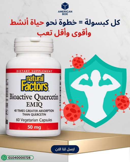Natural Factors Bioactive Quercetin EMIQ® هو مكمل كيرسيتين بصيغة EMIQ (Enzymatically Modified Isoquercitrin) المعروفة بأنها أكثر قابلية للذوبان والامتصاص من الكيرسيتين التقليدي. المنتج يجمع بين EMIQ® وفيتامين C، ويُستخدم عادةً لدعم المناعة ومضادات الأكسدة ضمن روتين يومي متوازن.
