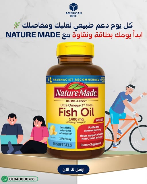 Nature Made Ultra Omega‑3 Fish Oil 1400mg burp‑less لدعم القلب والمخ والعين (EPA 683mg/DHA 252mg) | كبسولة يوميًا