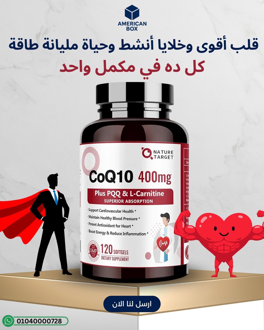 Nature Target CoQ10 400mg هو مكمل سوفتجل عالي التركيز يركز على دعم طاقة الخلايا وصحة القلب من خلال CoQ10، مع مكونات مساندة مثل PQQ وL‑Carnitine حسب إصدار المنتج. هذا النوع من التركيبات مناسب لمن يريد “حل واحد” بدل شراء CoQ10 منفصلًا مع إضافات أخرى، بشرط الالتزام اليومي.