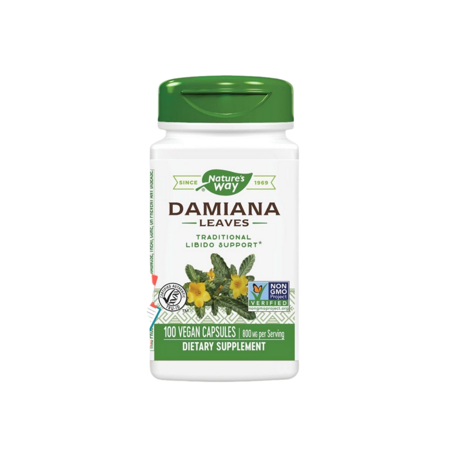 Nature’s Way Damiana Leaves is a single-herb supplement providing damiana leaf (Turnera diffusa) in vegan capsules, traditionally used in routines aimed at calmness, vitality, and general wellness. It can suit people who prefer a straightforward one-herb formula over complex blends.