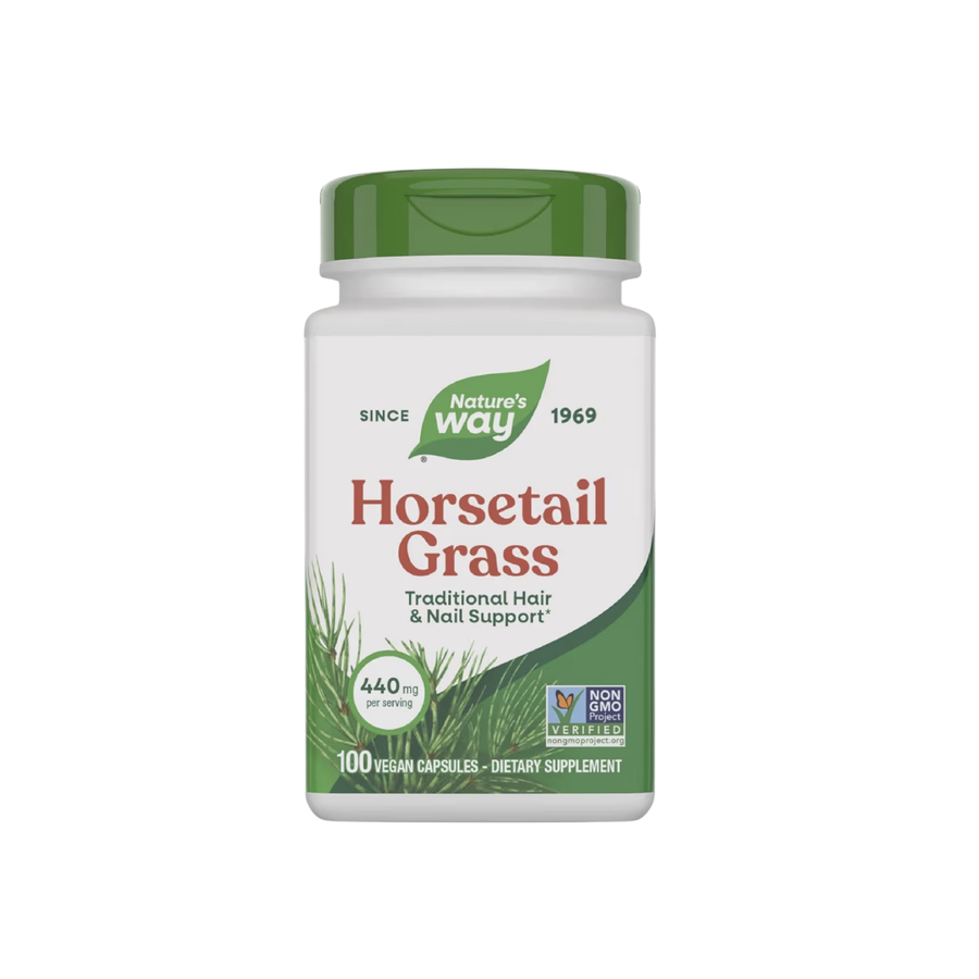 Nature’s Way Horsetail Grass is an herbal supplement providing 440 mg of horsetail per vegetarian capsule, traditionally used as a natural source of silica to support healthy hair and nails. If you want a clean, daily herbal option to complement a balanced routine for stronger-looking hair and overall wellness, this product is a practical fit.