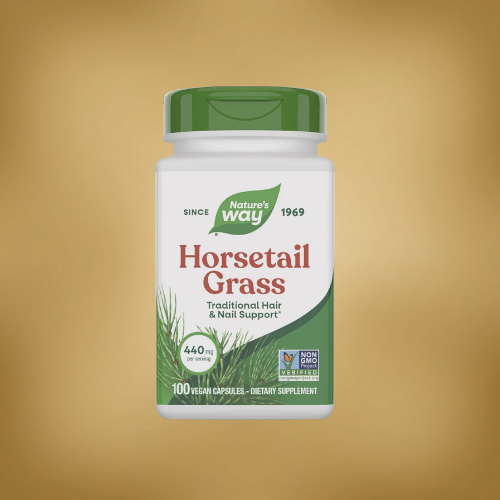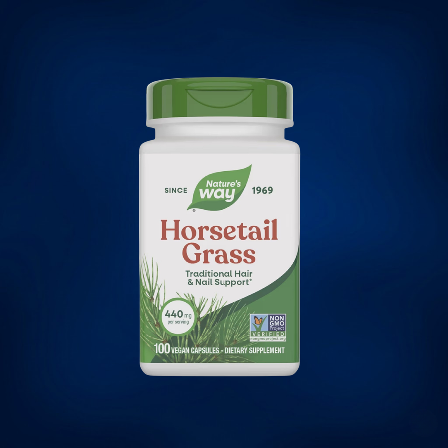 Nature’s Way Horsetail Grass هو مكمل عشبي بتركيز 440 mg من عشبة ذيل الحصان (Horsetail) في كبسولات نباتية، ومصمم لدعم الجمال والصحة من الداخل عبر توفير مصدر طبيعي من السيليكا التي ترتبط تقليديًا بدعم قوة الشعر والأظافر. لو بتدور على منتج يومي يساعدك تحافظ على مظهر صحي للشعر مع روتين متوازن، فده خيار مناسب خصوصًا لمن يفضلون المكملات العشبية النظيفة.