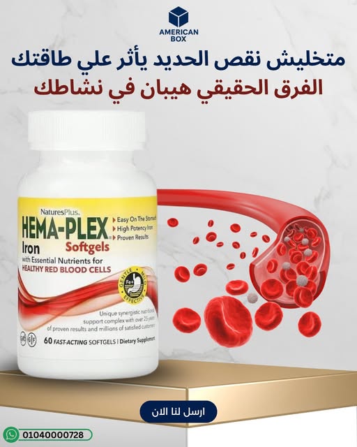 NaturesPlus Hema‑Plex هو مكمل حديد “Slow‑Release” يجمع بين الحديد بجرعة عالية مع مجموعة فيتامينات ومعادن داعمة لتكوين الدم، ويُسوَّق عادةً كخيار لطيف على المعدة مقارنة ببعض منتجات الحديد التقليدية. المنتج مناسب للبالغين الذين لديهم احتياج فعلي للحديد، لكن الأفضل دائمًا ربط استخدام الحديد بنتائج تحاليل مثل Ferritin وCBC لتحديد الجرعة والمدة بشكل صحيح.