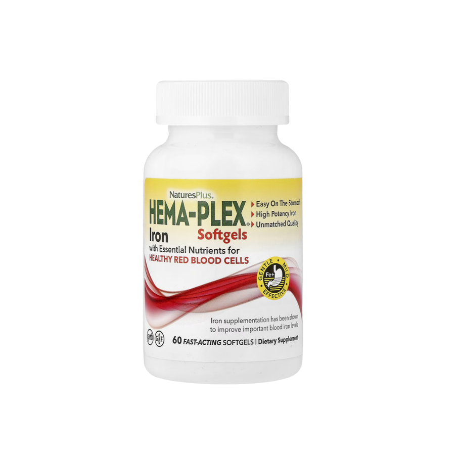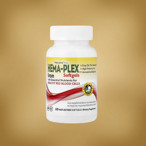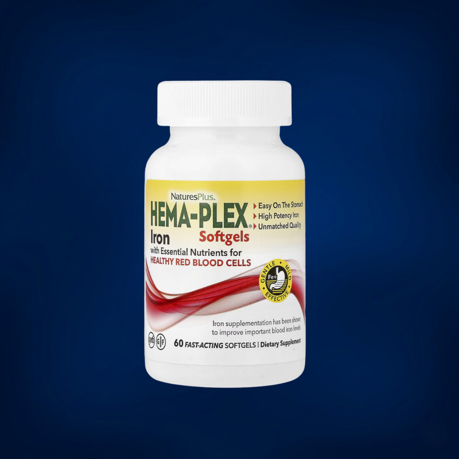 NaturesPlus Hema‑Plex is a slow‑release iron formula combining high-potency iron with supportive vitamins and minerals for blood health, often positioned as gentler on the stomach than some traditional iron supplements. It can fit adults with a real iron need, but iron use is best guided by labs (e.g., ferritin and CBC) to set correct dose and duration.