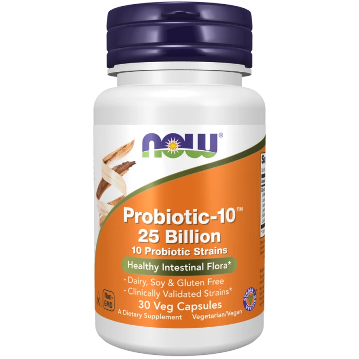 NOW Foods Probiotic-10 (25 Billion CFU) is a probiotic supplement providing 10 acid-resistant strains of beneficial bacteria, designed to support healthy intestinal flora balance and immune function. It's ideal for people who want digestive and gut comfort support within a daily routine—especially when paired with a fiber-rich diet (vegetables, fruits, whole grains)—because probiotics work best alongside good nutrition.