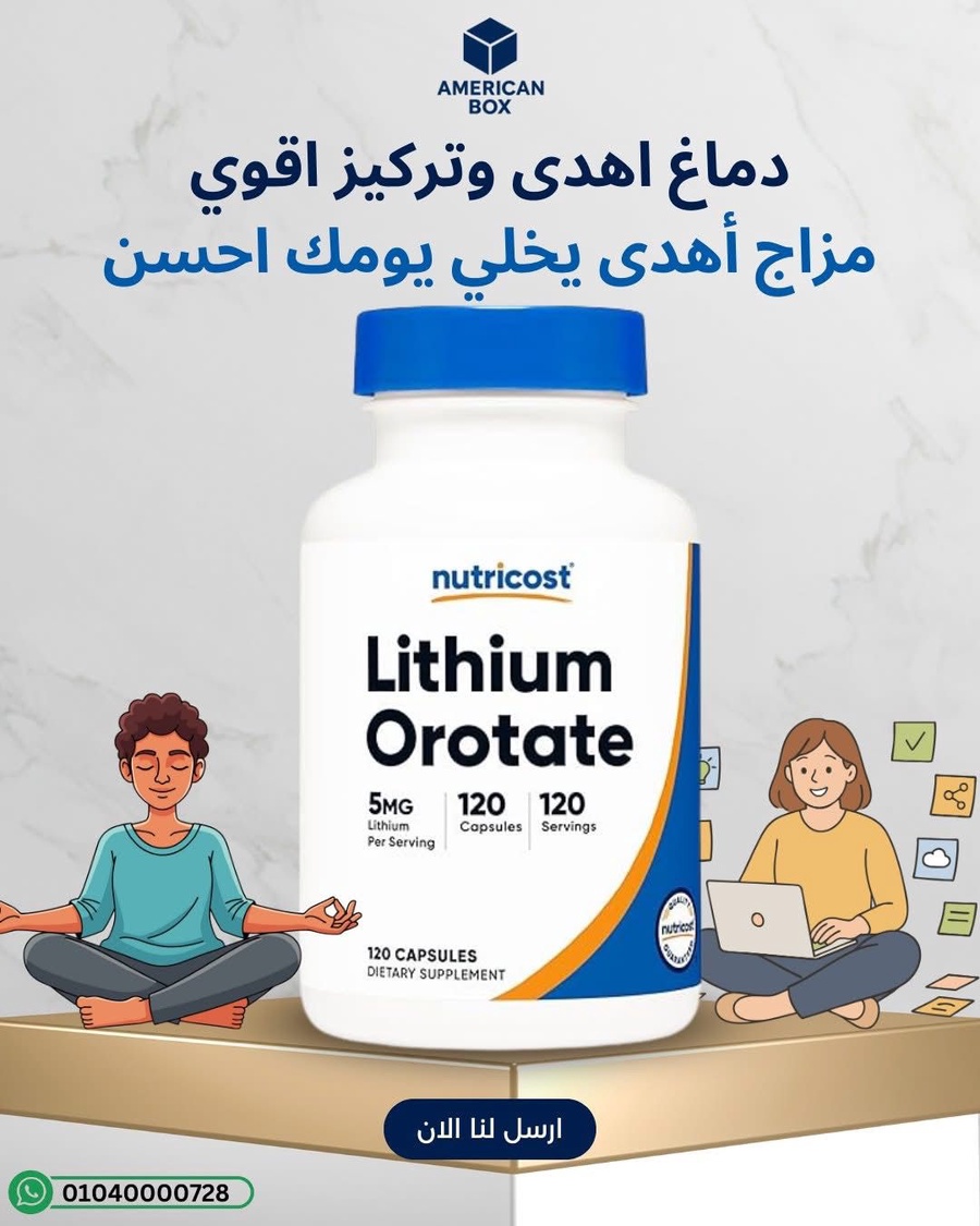 هو شكل يرتبط فيه الليثيوم بحمض الأوروتيك، ويُستخدم في المكملات بجرعات منخفضة مقارنةً بالليثيوم الدوائي الذي يحتاج متابعة طبية. الفكرة هي توفير دعم غذائي بسيط لمن يهتمون بالعافية الذهنية، مع التأكيد أن أي مشكلات مزاجية شديدة أو مستمرة تحتاج تقييم طبي متخصص.