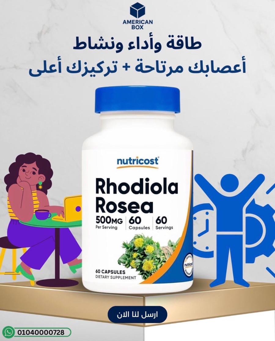 Nutricost Rhodiola Rosea 500 mg هو مكمل عشبي مُقنن يحتوي على مستخلص جذر الروديولا الوردية (Rhodiola rosea)، ومعروف تقليديًا كمساعد تكيّفي (Adaptogen) لدعم الطاقة والتركيز وإدارة الإجهاد. المنتج مناسب لمن يريد دعم الأداء الذهني والبدني خلال فترات نشاط عالي أو ضغط، لكن الأفضل دمجه مع أساسيات نوم جيد وأكل متوازن لأن المكملات العشبية تعمل بشكل أفضل ضمن روتين متكامل.