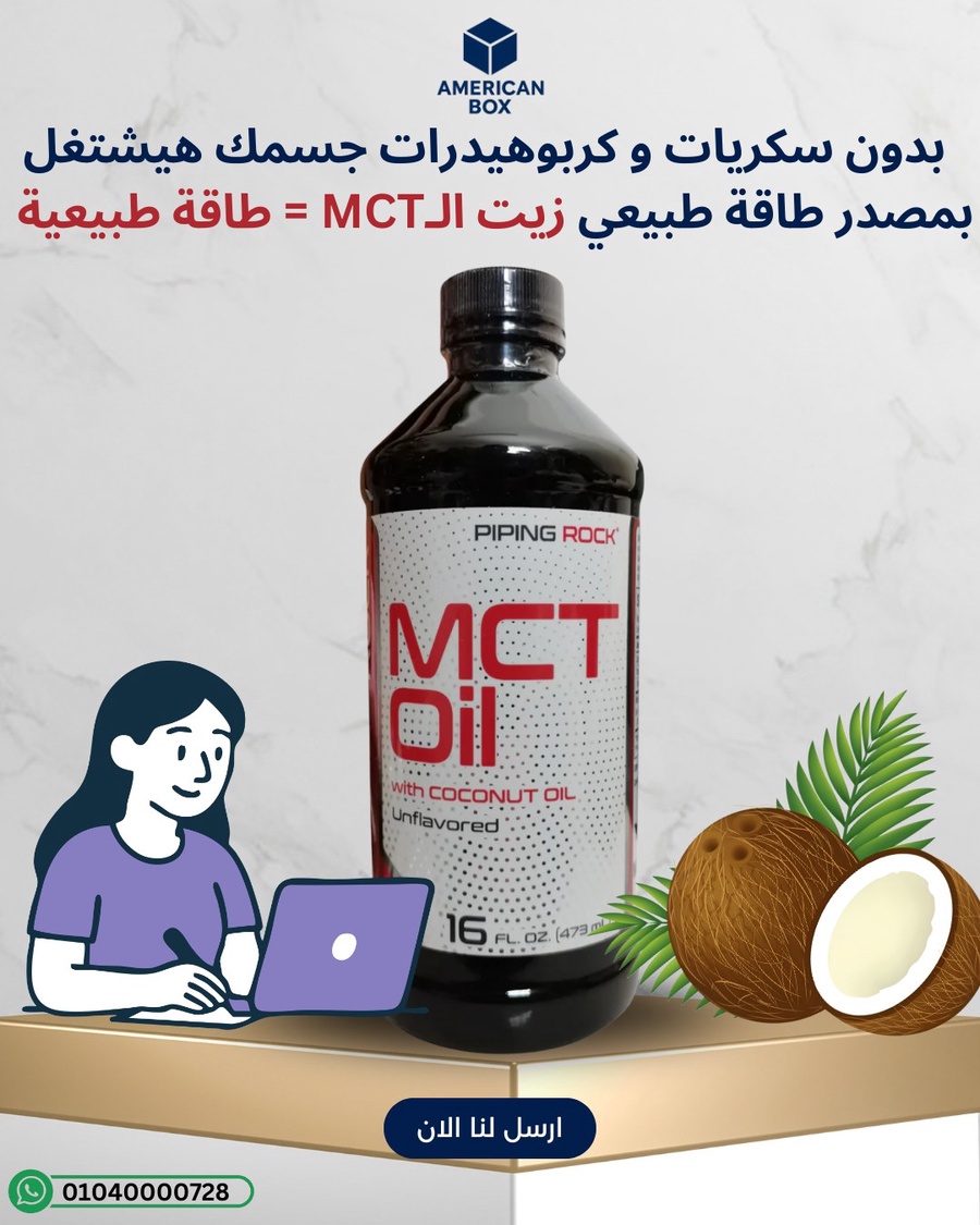Piping Rock MCT Oil هو زيت ثلاثي الجليسريد متوسط السلسلة (MCT) في صورة زيت سائل يمكن إضافته للقهوة أو السموثي أو السلطات، ويُستخدم غالبًا كـ “مصدر طاقة سريع” ضمن أنظمة مثل الكيتو أو لمن يريدون دهونًا سهلة الاستخدام. يتميز بأنه يحدد جرعة واضحة لكل ملعقة كبيرة، ما يساعد على التحكم في السعرات والدهون اليومية.