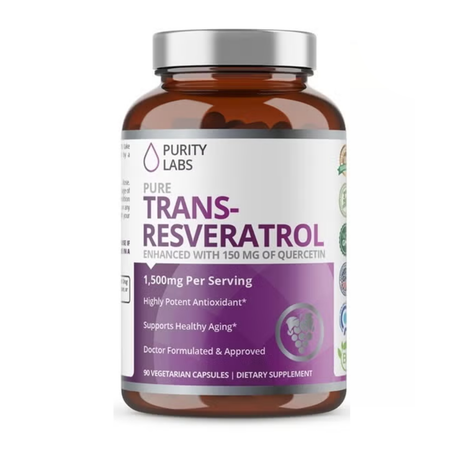 Common product details for this Purity Labs version list 1,350 mg trans‑resveratrol plus 150 mg quercetin. This places it in a higher‑potency category, so it’s best not to stack multiple resveratrol/quercetin products at the same time unless you have a clear reason.
