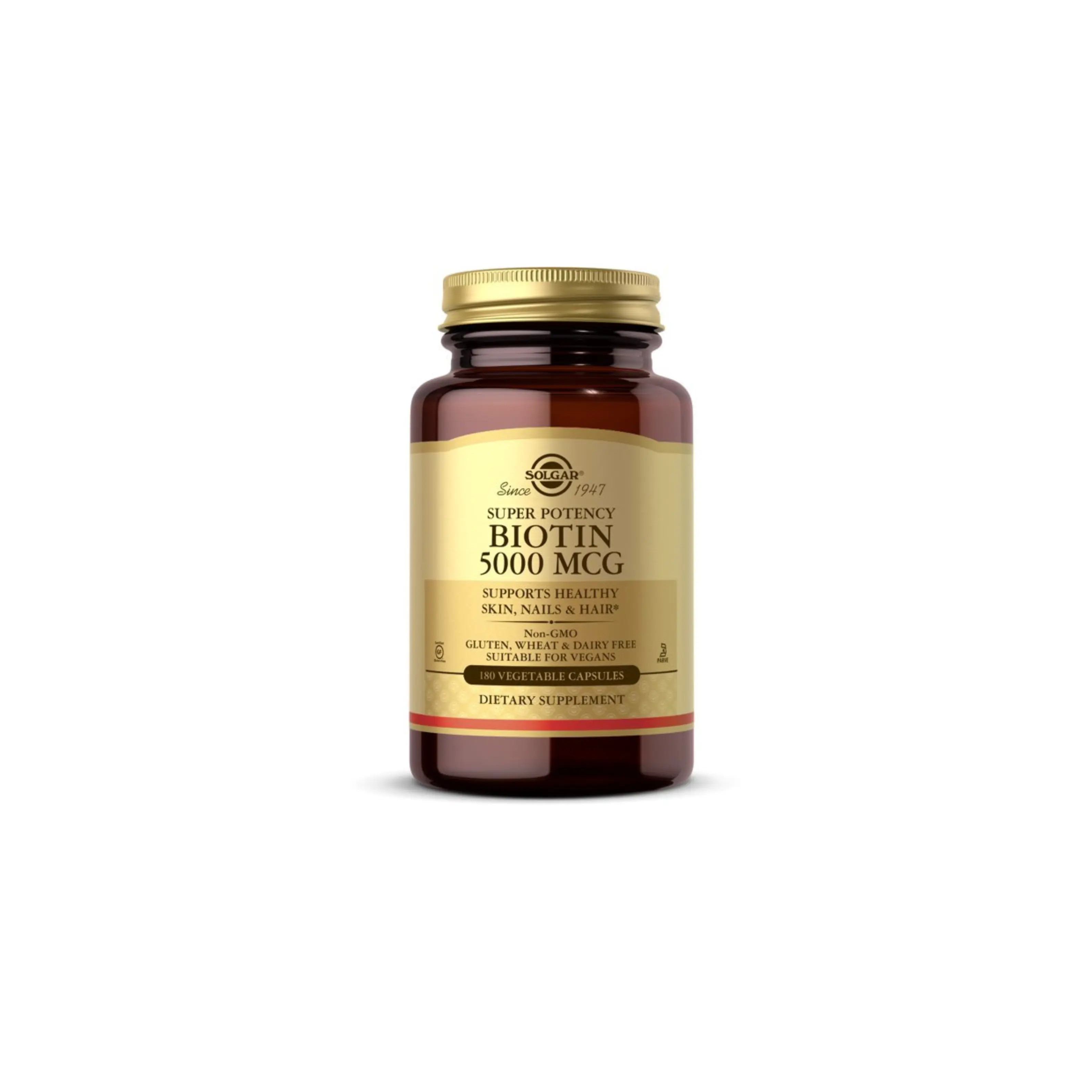 Solgar Biotin 5,000 mcg is a vegetarian capsule biotin supplement commonly used to support hair, skin, and nails as part of a daily beauty routine. Biotin (vitamin B7) is a water-soluble B vitamin, which is why it’s frequently included in “beauty” supplement stacks.
