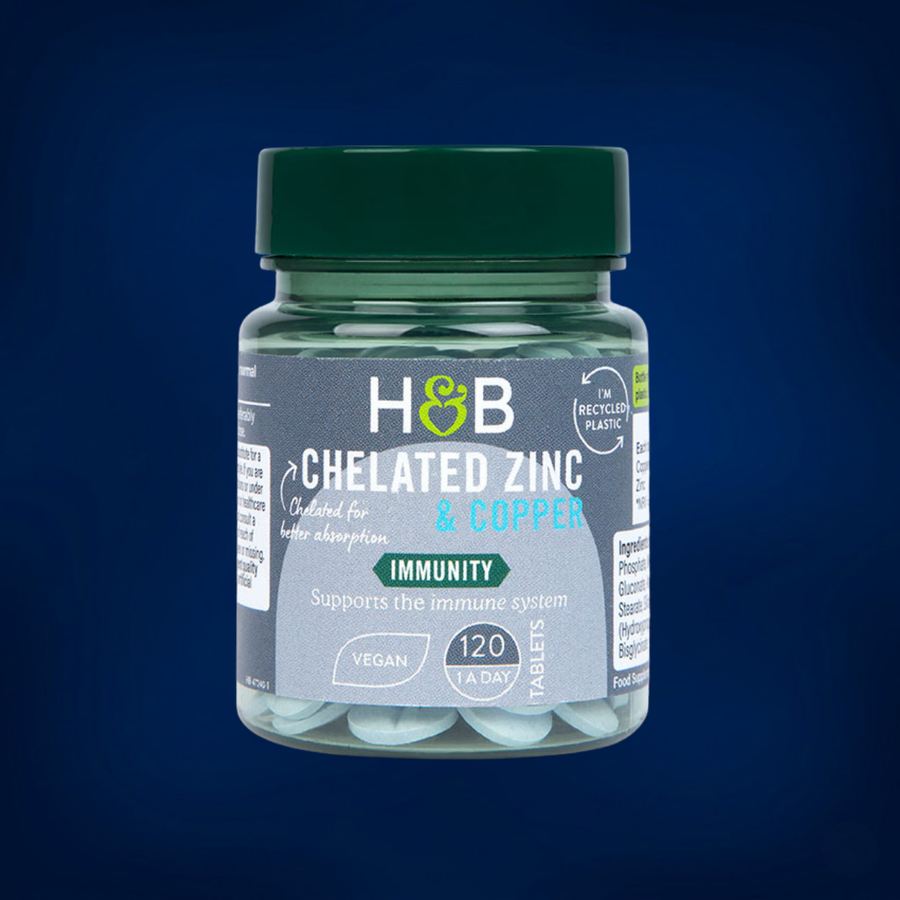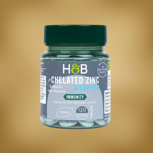 Holland & Barrett Zinc & Copper combines zinc and copper in one tablet for daily immune and skin support. Copper is included because long-term zinc-only supplementation can affect copper balance in some people.
