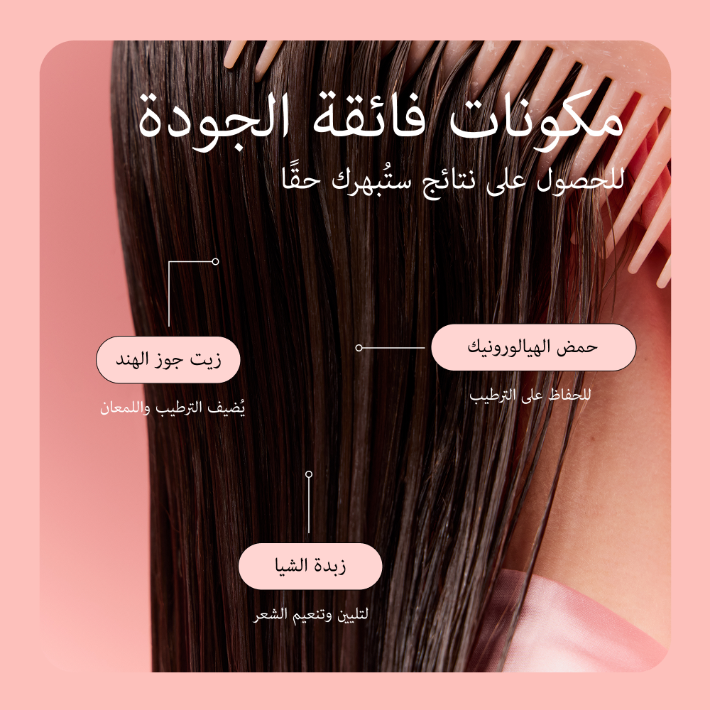 يُستخدم بعد الشامبو مباشرةً كخطوة ترطيب أساسية. إذا كان شعرك خفيفًا ودهنيًا عند الجذور، ضع البلسم على الأطراف فقط وتجنب فروة الرأس.