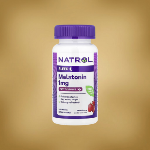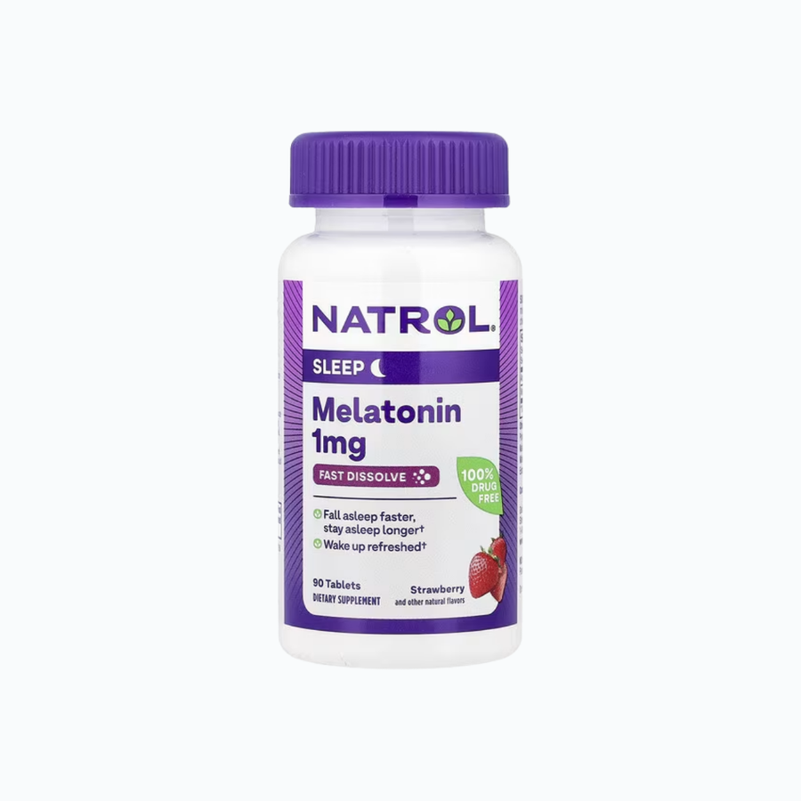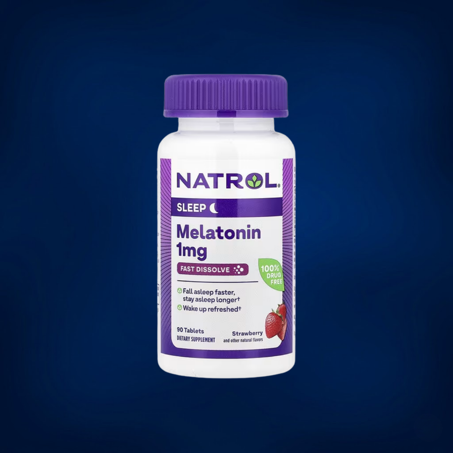 Melatonin is a hormone associated with regulating the sleep–wake cycle and is widely used to support bedtime routines, especially when sleep timing is disrupted (e.g., travel). Natrol Fast Dissolve is designed to dissolve in the mouth without water for convenient use.