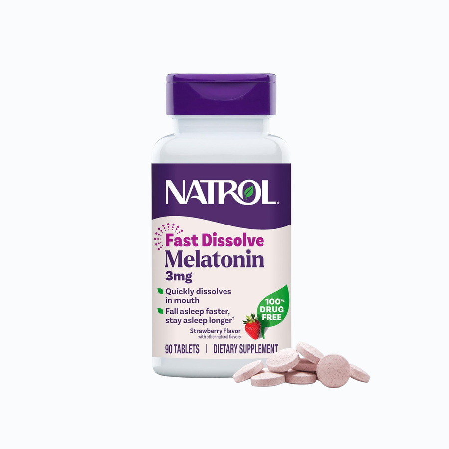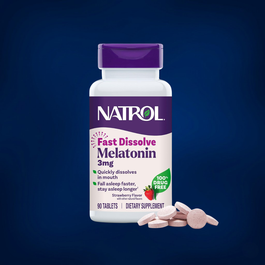 Melatonin is a hormone associated with the sleep–wake cycle and is widely used to support bedtime routines and sleep quality—especially when sleep timing is disrupted (e.g., travel). Natrol Fast Dissolve is designed to dissolve in the mouth without water for convenient nighttime use.