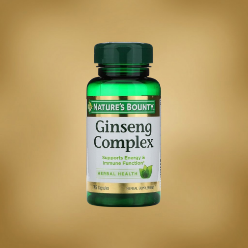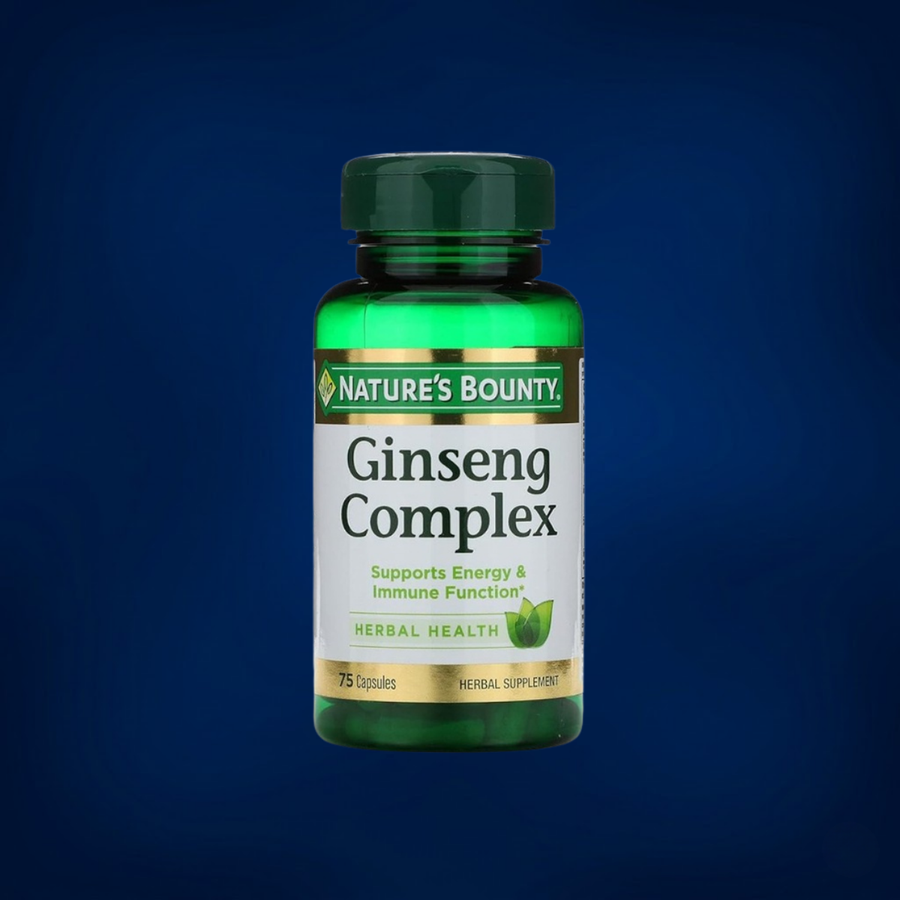 Nature’s Bounty Ginseng Complex typically combines multiple ginseng extracts (such as Korean and American ginseng) and may include vitamin B12 to support daily energy and vitality. It’s commonly used in “mental energy” routines for focus during busy or stressful periods.