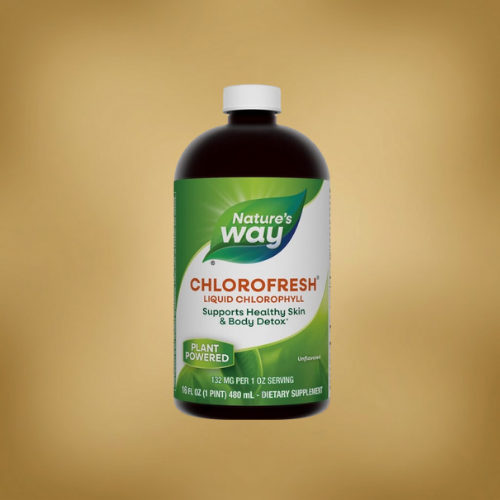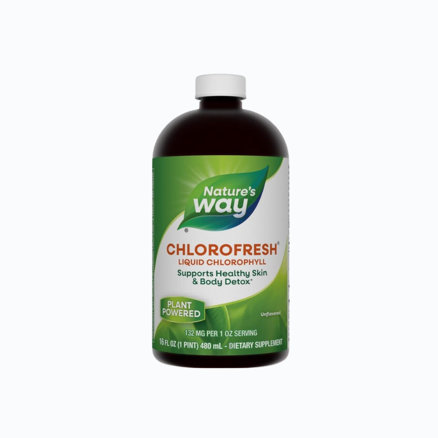 Nature’s Way Liquid Chlorofresh is a mint-flavored liquid chlorophyllin (copper complex) supplement commonly used as an internal deodorant and daily freshness support. It can also be used as a mouth rinse or gargle per label directions.